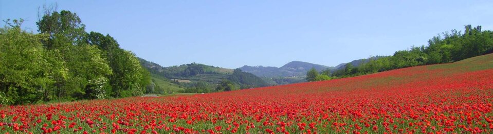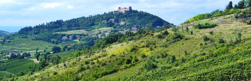 I campi della pianura, lasciano il posto man mano ai filari di vite e ai frutteti, quindi ai boschi dove i pendii si fanno meno tondeggianti: in queste valli potete trovare antichi borghi e castelli, isolati eremi o terme secolari su quella che, in tempi passati, era l'antica Via del Sale che valicando i monti collegava le grandi città del nord a Genova.
